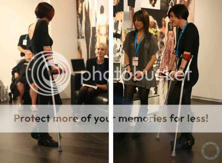 This girl, by the way, was the first casualty of LFW: a true fashion victim, she actually broke her foot TWISTING ON HER HIGH HEELS!!!